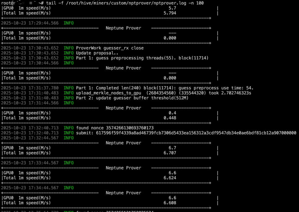 tail -f /root/hive/miners/custom/xntprover/xntprover.log -n 100